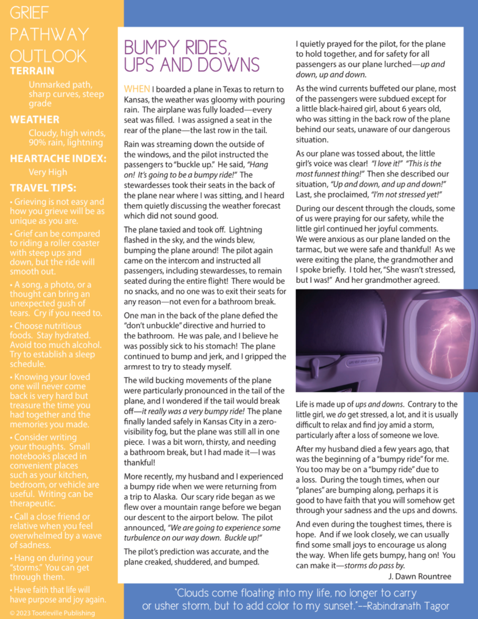 “Pathways through Grief,” a series of 7 mailers, can help bring comfort to those who are grieving during the first year after a loss. “Pathways” are appropriate for use by individuals, hospices, churches or funeral homes. Each “Pathway” provides a story to urge anyone who is grieving toward hope and healing.